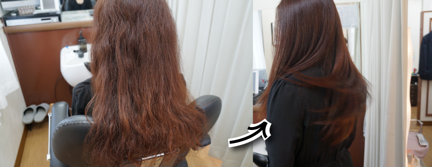 自然な縮毛矯正5クセが強く、白髪染めもした方です。